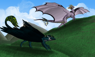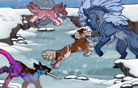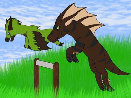 Nokohii prompt 6.My two Delucalion and Techno-paintball race to deliver letters.
