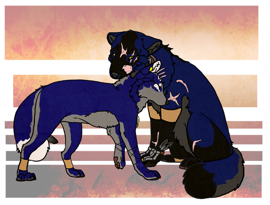 Also, I don't know if it's noticeable, but I tried to make Zaroth seem much larger than Val. That's because Zaroth is larger than Val, and not just because he's bulkier but because Nether Daemons are naturally bigger than Inferial Daemons. Additionally, Inferials are larger than an average Andolinian Lupus, at least twice as big... meaning Andolinians are smol smol compared to Nethers. Imagine David and Goliath and you've got it.
