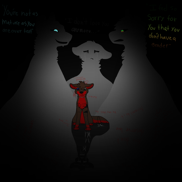 When I was 10 I was one of the happiest kids out there, I played with my brother, mother and father. Yeah, I was bullied but it wasn't bad and I had a lot of friends who cheered me up. My relationship with my family was so amazing I saw my parents as gods on pedestals. When I was 14 that's when shit really happened. Most of my animals died the year previously and all we had was PT and Crystal, we got Storm that year because we needed something to cheer us up. The happiness didn't last long, after Christmas my mom and dad told me they were splitting up. I broke down into tears because I thought we were a happy family, and in that moment our happy family turned to shreds of what it once was. My parents said they'd still be friends for us to help us with the new system but it didn't help what so ever. For the first time in my life I saw my parents as humans, and what I saw I did not like, especially my dad. Around this time I went depressed and started to self harm, no one in my family knew about that, and I plan to keep it that way. Now that I'm 18 things have gotten worse, I've distanced myself from my family and I indent to keep it that way, I hate my parents, I hate the way they act, I hate their personalities and what not, and with my brother the only friendly contact we have together is watching anime, other times he makes jokes that hurt my self esteem or that i think are true while he jokes. I'm depressed and having suicidal thoughts, I don't know how long this will go on, but we'll see. Anyways I usually don't like to talk about this stuff because there are people out there who have it worse than I do, so I don't complain