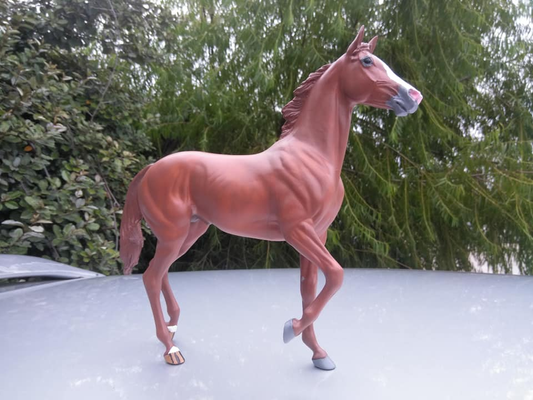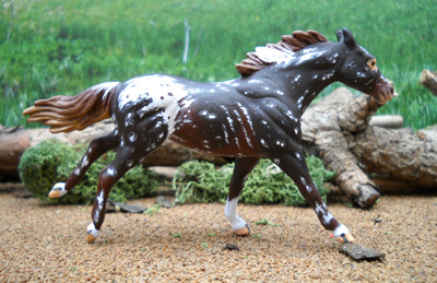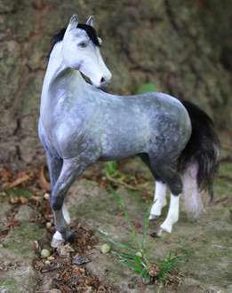 This is a Breyer G2 Warmblood Stablemate painted by me several years ago. He's handpainted in oils (as are nearly all my custom models) with eyes, hooves and markings done in acrylics.