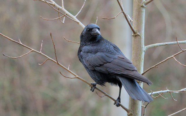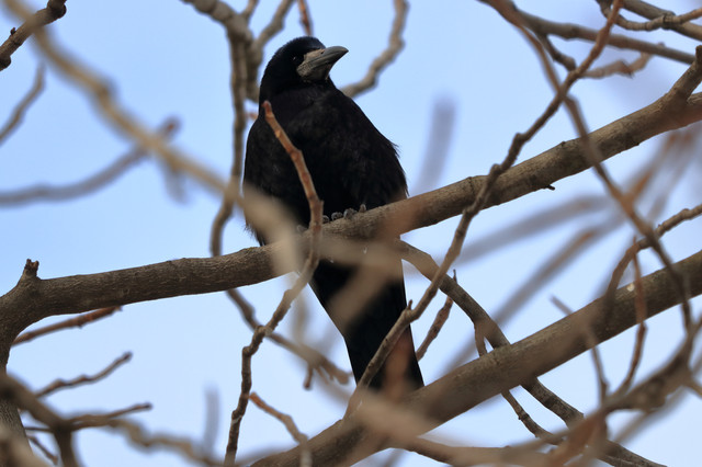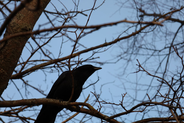 A corvid not sure which sitting up in a tree, I love how clear it came out and how it looks.------------------