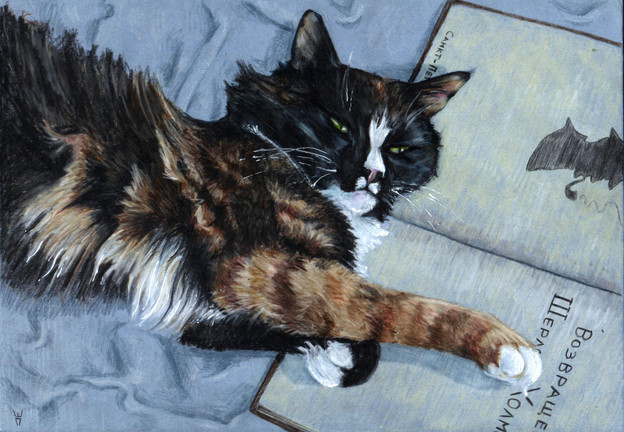 #cat #animal #feline #books #portrait #kitty #acrylic #animalart #study #black #cats #maria #poison #snyder #v