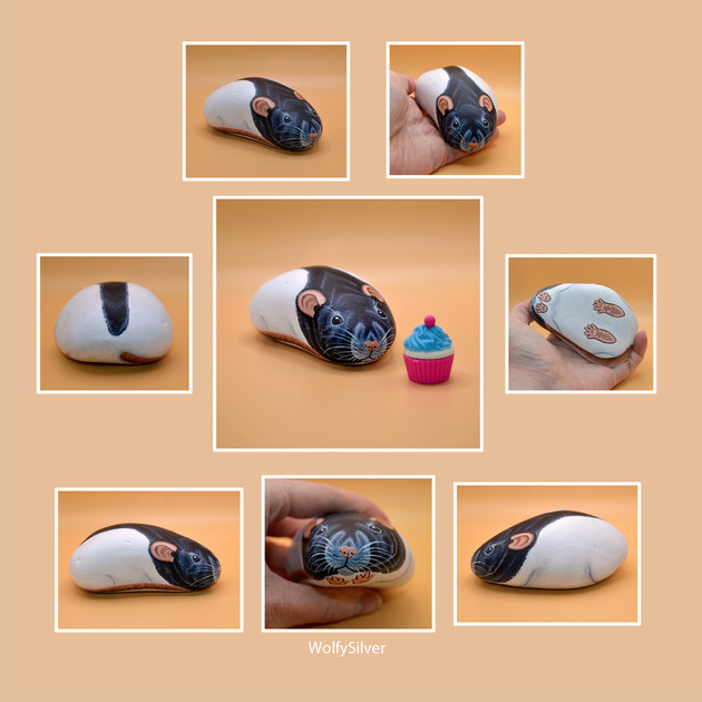 Commissioned rat pebble! Painted in acrylics on a little pebbleI do have some already-painted ones at wolfysilver.etsy.com/ (more coming very soon too!)