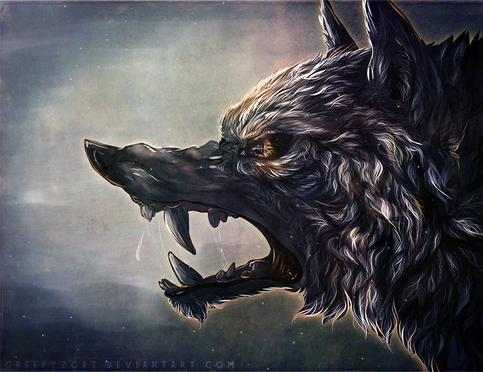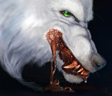 Reminds me a bit of the Wolf God in Princess Mononoke. Love how the blood is black in his mouth, you can easily imagine how he would tear someone apart.