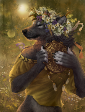 #anthro #anthropomorphic #commission #digitalart #digitalpainting #fantasy #forest #portrait #shamanic #spirit #spiritual #wolf
