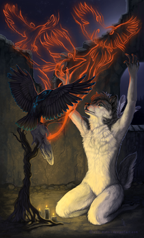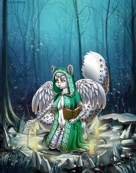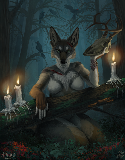 #anthro #blackandwhite #commission #cultist #digitalart #digitalpainting #fantasy #fullbody #furry #magic #priestess #wings #wolf