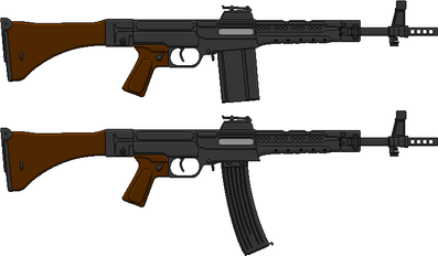 An assault rifle with an underfolding stock.Take your cheekweld elsewhere.
