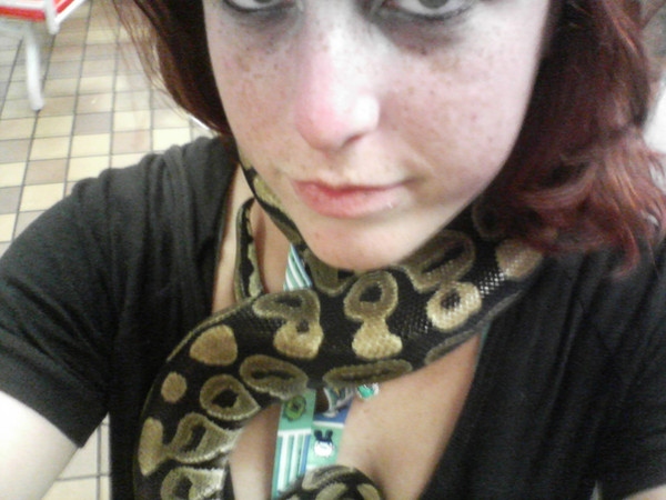 Myself with my sisters ball python =3getting my own ball python either this year when