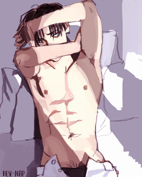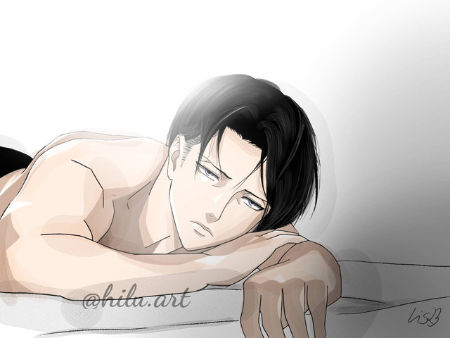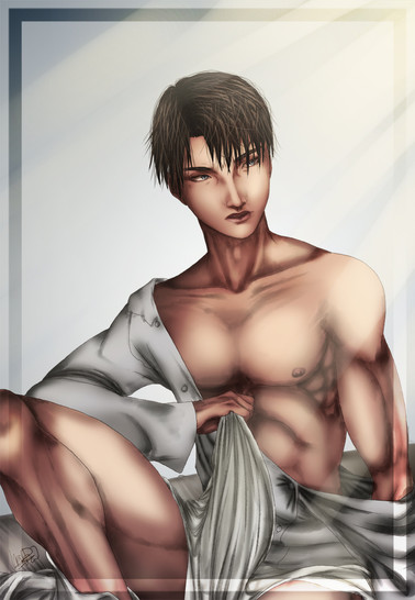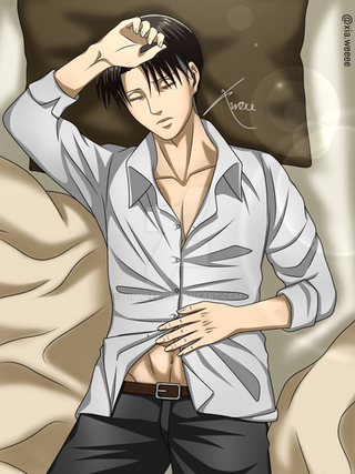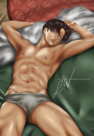 *I walk into my room and see this lying on my bed* L-Levi?! *chuckles as I saunter over to him* I always knew you were a naughty type.