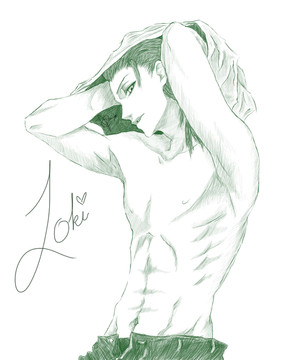 Oohh my... This is pretty damn sexy. I really like how the abs are drawn, and the folds on the bed sheets and pants are really nice! <3