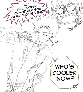 haha, ya if they make those for that, don't know how he'd fair in the shower or any other instances where you have to take your shoes off, which in japan is all the time. lol, I'm sorry, I'm just messing with you a little. your art is fine, quite frankly I don't even know why I'm at this picture, I'm not even gay.