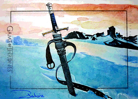 Very nice. I want to thank you for actually depicting the Valyrian blade in it's proper color. One of the things I take a minor issue with in much of the ASOIAF fanart, and even the show for that matter, is depicting the Valyrian steel swords with a regular silver colored blade. They should not look just like every other blade. They should have a very distinct appearance, that makes them immediately identifiable. Well done.