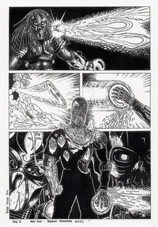 Heh, You may be surprised at the mediums?? I did this dureing a few dinner breaks at work useing..Blue and red biros, Black marker pen, Yellow High lighter pen, White stablo and tipex (correction fluid)