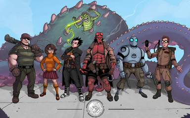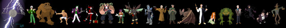 Nice lineup! Did you drawn them individually then bring them together or all on the same page? I really like that you've done them all in your own style-whats with that character with that metal thing on his crotch? I've only read a few Hellboys & he's always struck me as a bit odd Hellboy looks cool too-I'm glad that you've kept true to the comic version as opposed to the movie one.