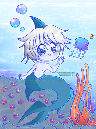 This Roy was fuuun, I made his tail more detailed and well, as I told u in from one of his mermaid drawing, when he is out of water he's more of a fish. This is also a scene of the AU, every drawing connects with each other.