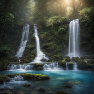 A breathtaking natural spectacle where cascades of water flow gracefully down rugged cliffs, leaving behind a mesmerizing display of beauty and power. As the water plunges from great heights, it creates a symphony of sound, a soothing melody that resonates through the air. The sheer force of the falling water creates a misty veil, which shimmers in the sunlight, adding an ethereal touch to the scene. Surrounding the waterfall, lush greenery thrives, nourished by the constant moisture, creating a tranquil oasis of life.
