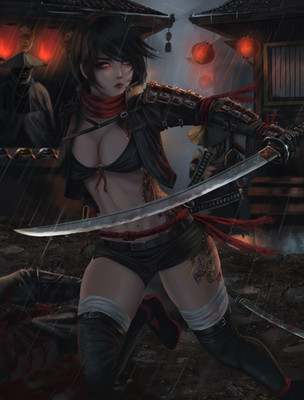 #japanesse #characters #conceptart #darkfantasy #darkness #digitalart #drawings #environment #fantasy #girl #katana #temple #digital2d