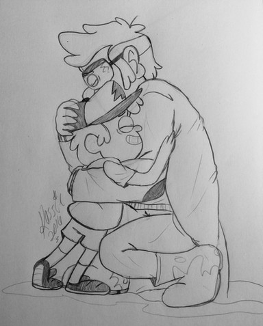 This may be my greatest achievement ever. Or if not, try again. How bad can it happen?Anyways, I finished sketching Dipper hugging Mabel inside her unchained bubble (no they're not kissing. Incest people these days...). I don't know what will happen in there. Its like a Schroedinger's cat thing, for now.