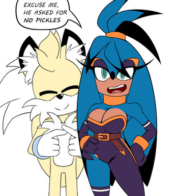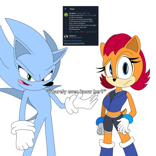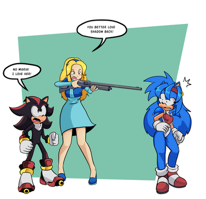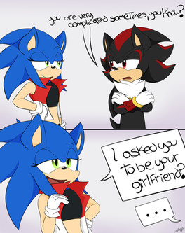 Here's a drawing I did for , based on a headcannon I had after watching one of @TurboJehtt's videos (if you know, you know).Blue finally discovered Shadow's secret, and he's way past embarrassed.