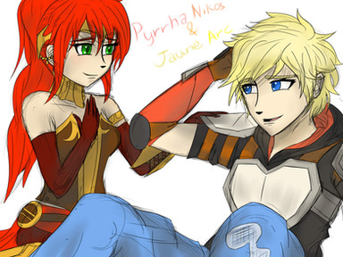 #arc #canon #fanart #jaune #nikos #pyrrha #ship #rossterteeth #rwby #jnpr #worldofbaka