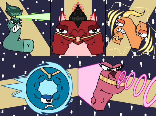Here are Chilbo of the Frosticons, Kramm of the Weldos and Berp of the Munchos running from the Nixed Mixels for the new special.Kramm: "AAAAH!!! ZOMBIES!!!!"