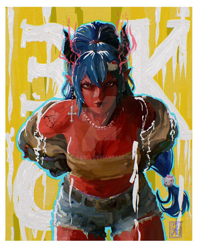 This was supposed to be something ENTIRELY and COMPLETELY different, but the sketch I was working on looked too cool so I had to follow through with it. It compels me, see! A hoarse, croaking whisper SCREAMING into my mind!A sweet and deserved death comes in many forms. This one just happens to be in the shape of a curvaceous demon mistress. Oh, the absolute ignominy of it all!