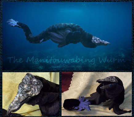 Like his parents, he's got good balance (when nipping doesn't work, they seem to resort to kicking at you) and quite a range of movement. We're always experimenting, and we've made a few alterations on this guy that give him the ability to tuck his head right back like roosting birds do. He's about 7" tall when standing in a resting pose (if you tilted his head back he'd be taller obviously), and made with faux furs & cast resin pieces from our original sculpts. Totally poseable, nice and durable, with a...tolerably evil personality. If we can get them tamed down a bit, they'll hopefully be less squawky.
