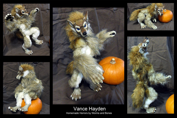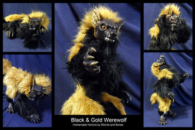 Yorrick himself (and his fabulous hat alas) are sold, but other werewolves, when we have 'em in stock will be $250, and we can make custom weres to your colour specifications for another $25 on top of that.