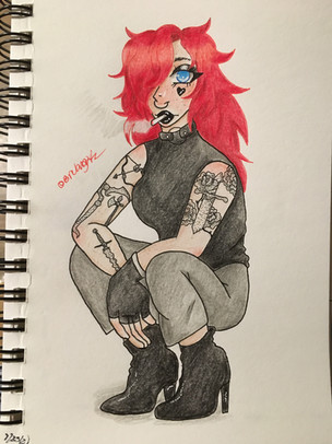 #oc #character #characterdesign #coloredpencil #coloredpencils #drummer #elf #elfgirl #originalcharacter #originalcharacters #punk #punkgirl #rockband #sketchbook