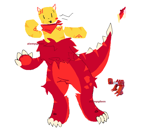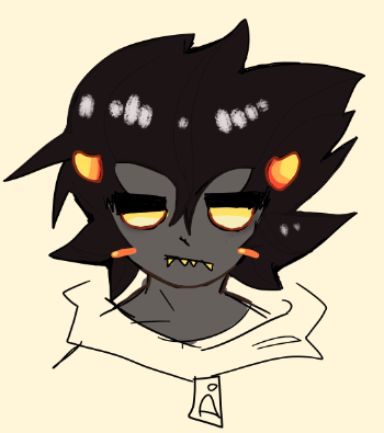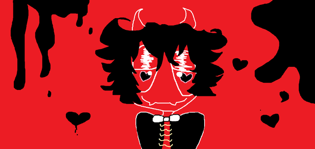 another silly character introduced to the silly worshipbob universeshes a demon thing,,,, she has two sets of horns and shes made of like goo which is why the circle things are there, they were suppost to make her look more gooey but it didnt rlly work