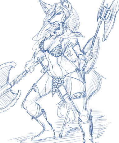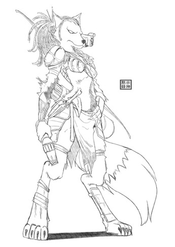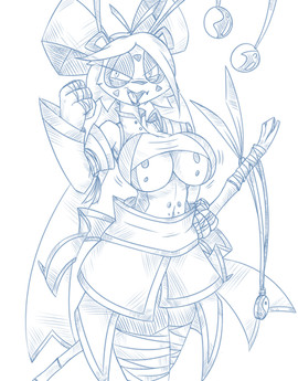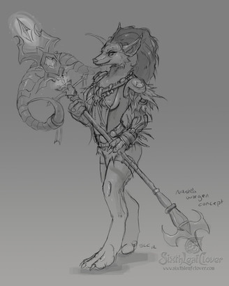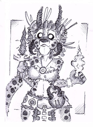 C’est une hyène ritualiste que j’ai dessiné durant le livestream! Le perso était vraiment fun à dessiner! Sa c’est vraiment du thème sur lequel j’aime m’éclater la preuve en est que ce me plait énormément! x3 C’est du super fun et du disjoncté! Et cette petite touche sexy met un peu de piquant dans le dessin! hehe! C’est ENORME! (Oui la poitrine en effet! xP)