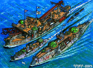 North Ghurrkan Red Sun class airfortress, underway to Boanne after field testing, accompanied by two Ghurrkan missile destroyers. 1831----------
