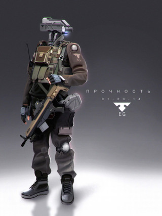 Had this idea of a weird military robot with human features/clothing. Based on this drawing: woutergort.deviantart.com/art/…Related content