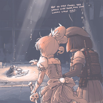 Because everyone should be taught to clean up after themselves...Only after I'd laid down the flat for this one did I realise that Triela's outfit is pretty close to one of mine, bit annoyed at myself about that. Toyed with the idea of throwing some graffiti/street art on the wall as well, but couldn't get it to fit without cluttering the picture or ruining the balance of the thing.