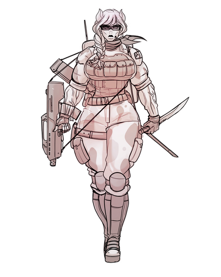 Just updating Odile's rifle setup. Moved the red-dot forward, added a light, sling, and one of those devices to let her fold the stock. Not sure on how reliable those things are considering it means splitting the buffer tube, but it's not like she's out for long at any one time either.Think I might have slightly undersized her rifle too.