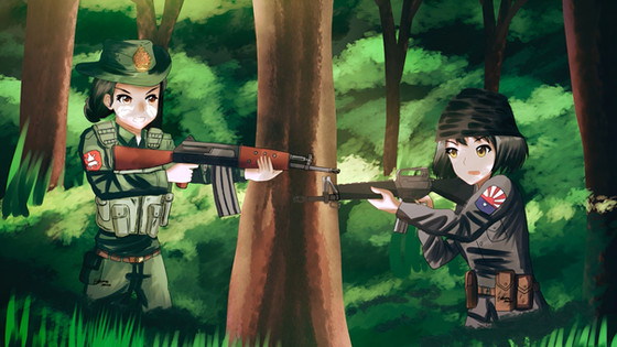 Gisèlle's mercenaries can take ground, but they're too few to hold it, so while she's busy kicking the shit out of opposition forces the local military needs modernising and professionalising. That requires instructors. Sounds like a job for Brooke... big thanks to for letting me borrow her. Had to keep reminding myself that she's shorter than Monty when scaling her AKM.For those wondering: the Impalas are Gisèlle's, and have business elsewhere. I'm not actually sure they can carry the CB470, sometimes it's listed as possible armament, sometimes not, but it suits the mood. Plus I've not found anything that specifically says the Impala Mk.II couldn't carry those.