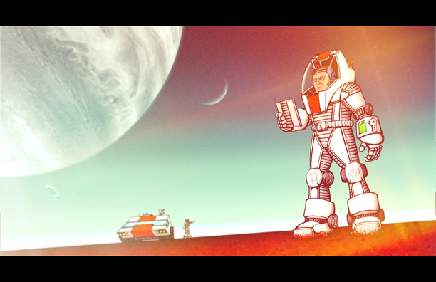 Final one before I go back to work. Wow I am never trying to work out perspective on a spherical screen again. As the Orca has no exterior windows, the idea was that the bridge should have a spherical view screen instead, centred on the helmsman's position... everyone else is going to have to put up with some distortion. Unfortunately, all I managed to do was confuse myself. Not my finest illustrative moment and, to be honest, I'm kind of glad to see the back of it now...