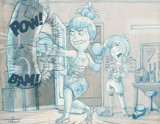 When I have lots of work to get through, I like to draw people in the same predicament... makes me feel better. Did this in less than a day. Haven't drawn Hardy in awhile, seemed like a good oppertunity to now. Bit of a different take on the B.A.D's firey red-headed commander.