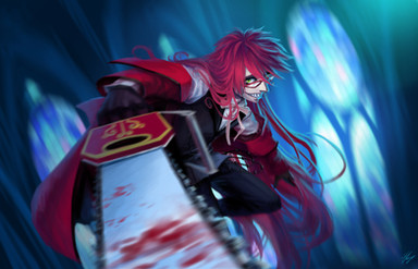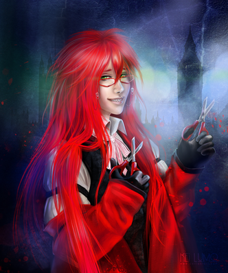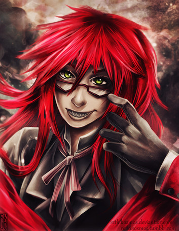 #anime #black #blood #chainsaw #crow #eyes #fantasy #film #flare #glasses #gray #grell #grimreaper #manga #pink #red #white #blackbutler #cinematicrecord #deathscythe #kuroshitsuji #grellsutcliff #sebastianmichaelis