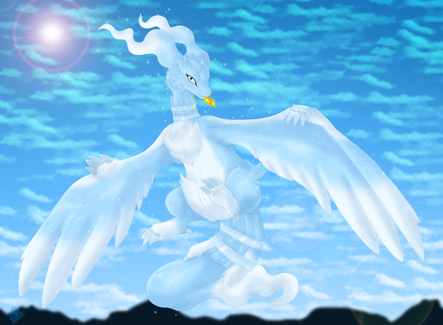 Wow that's a great Idea. The clouds are so fluffy and soft and golden I love your shading, the amount of details is something I have still problems with ^~^ One little Idea for improvment: the eyes don't seem to be anatomically correct. Try to draw them turned to the left, and a little further down. But however, this artwork is great :3