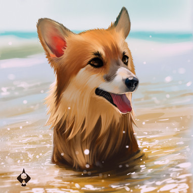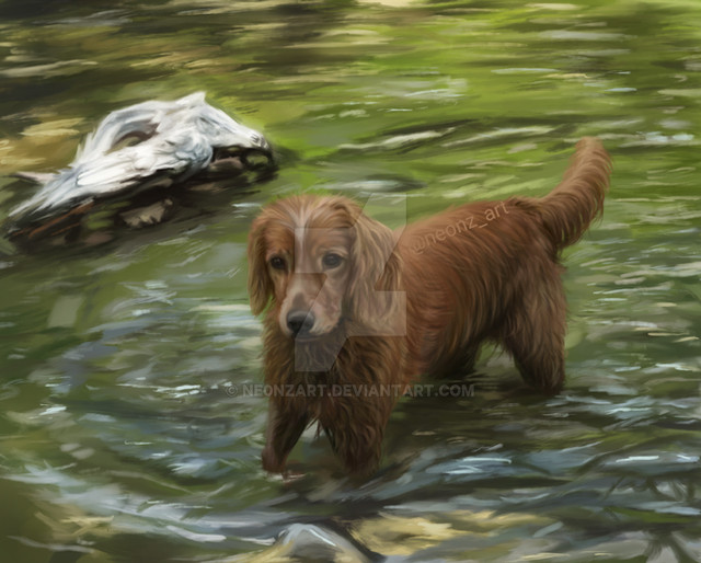 This poor guy ended up getting MMM and wasn't responding to treatments, so she made the difficult decision to euthanize him. She wanted him painted laying down in the creek, which was his absolute favorite thing to do. Hope I did him justice! Rest in peace, good boy ♥