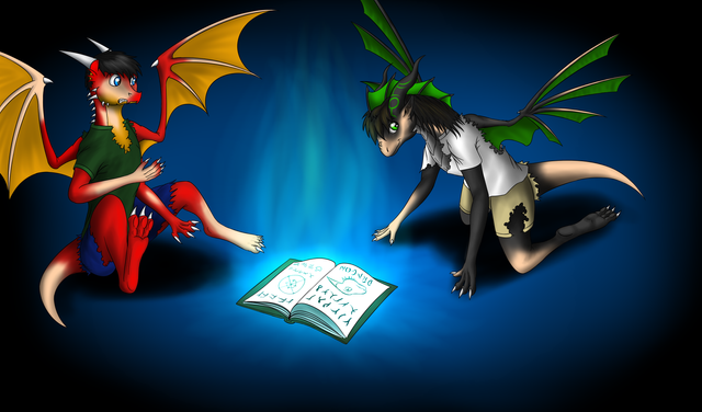 The little white dragon teaches the big dragon a foreign language. ^^
