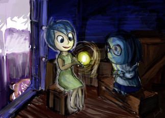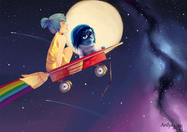 I just realized that I've never drawn any proper Inside Out fan art until now.Yep, just watched inside out again, and I wanted to draw Joy and Sadness on the rocket. I originally wanted them to be soaring over piles and piles of memory spheres, but drawing too many spheres killed my hands so I put some of them in the rocket instead.