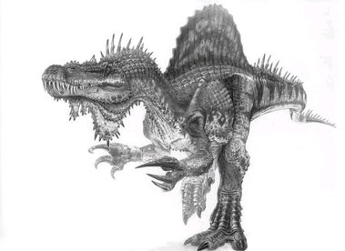 People need to stop thinking spinosaurs could beat and kill a t-rex. Spinosaurus is mainly a fish eater, and rarely hunts on land. It might be taller, but in muscle power t-rex wins. While a t-rex getting knocked over could kill it because all large predators are top heavy. T-rex has a chance of getting back to its feet than Spinosaurs. As you see that big sail on its back is just thin bones and blood plus adding to being its back bone. Just a bite could cripple it. Why have them? Well as everyone knows, dinosaurs are cold blooded. its how Spinosaurs warms back up from being in the water or the cold night.