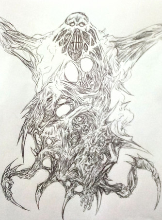 Some kind of hidiously deformed zombie-humanoid thing, with a centipede creature birthing from its back. How the hell did I manage to fit this whole thing on the page without any cut-offs I have not a clue.Related content