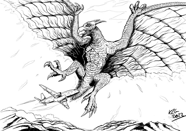 #godzilla #ink #kaiju #monster #rodan #toho #illustration #kingghidorah #godzillakingofthemonsters #inktoberchallenge #inktober2020