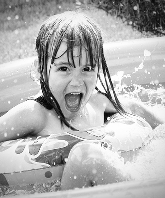 Great black and white shot. Reminds me of my childhood, jumping in the pool like that!