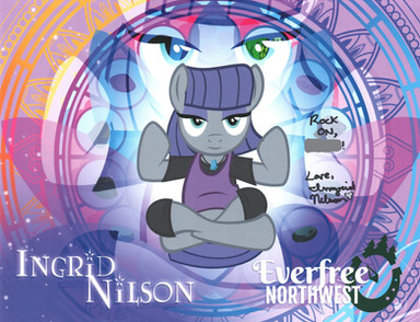 (Because I can't think of better titles for these things.)Fillies and gentlecolts, it gives me great pleasure to announce that I have finally completed another step in my Quest for Autographs with Lena Hall! Now, obviously, she voiced and sang for Countess Coloratura, better known as "Rara," in my personal favorite season 5 episode, "The Mane Attraction." And what a stellar performance she gave! Whether it was the satire on modern pop, "The Spectacle," the unofficial Equestrian anthem she performed as a filly with AJ, "Equestria, The Land I Love," or the almighty Broadway-style piece, "The Magic Inside" (a.k.a. "I Am Just a Pony"), it was truely a one of a kind event in MLP, and my words are insufficient in describing how epic and jaw-dropping it was. I'm just sorry I wasn't in this fandom when the episode first aired in November of 2015. (In fact, I started watching the following month, when the S5-S6 hiatus had just begun.) Point is, we really need Coloratura to make another appearance, with more fabulous music that Lena can show her extraordinary talent with.