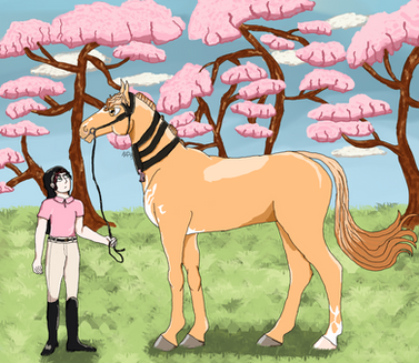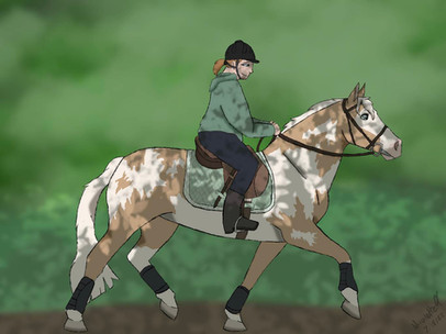 I think this is the first time my struggles with backgrounds has actually come in handy, considering I was having a hard time figuring out how to show motion. (Blurred background + Dust = Motion, or at least to me..) Both horse legs and BG's are like the bane of my existence, art wise (And honestly, saddles too.)