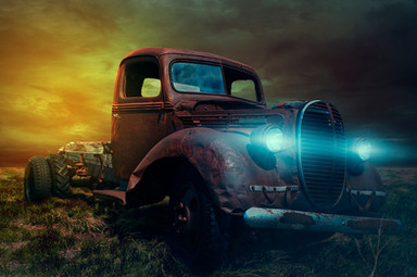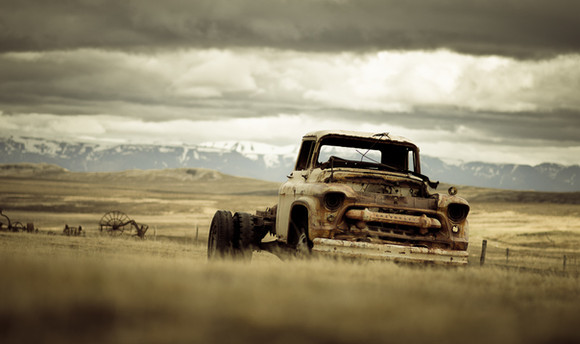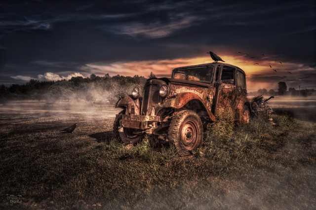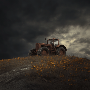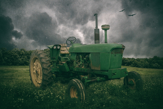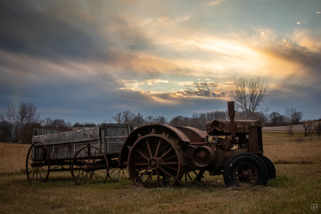 Nice shot! I like the bright lighting behind the tractor, it gives the image a religious quality.